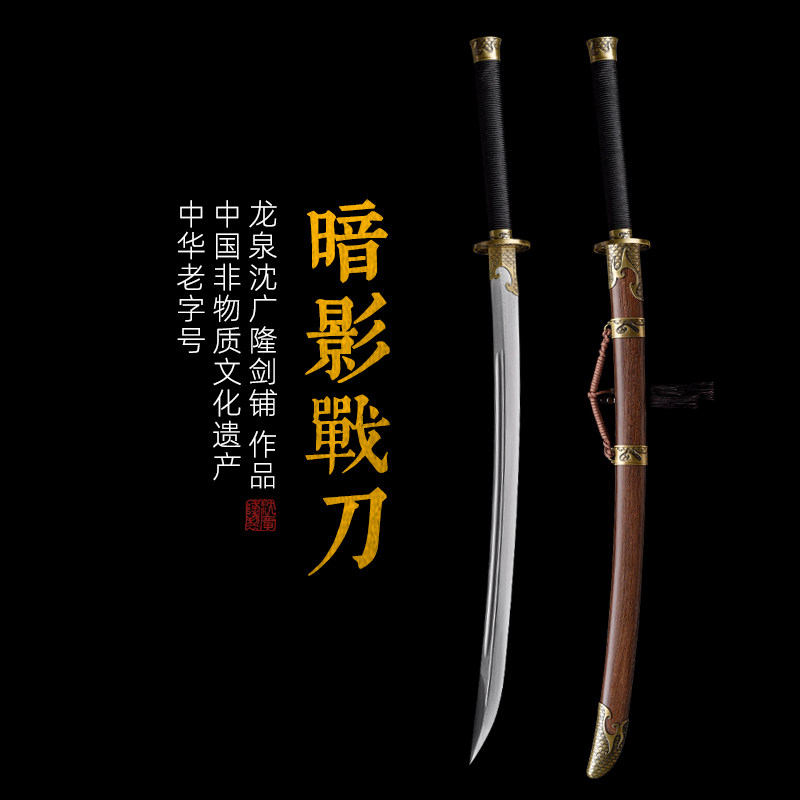 暗影战刀 汉唐刀剑 硬刀一体刀剑 花纹钢龙泉沈广隆宝刀 未开刃