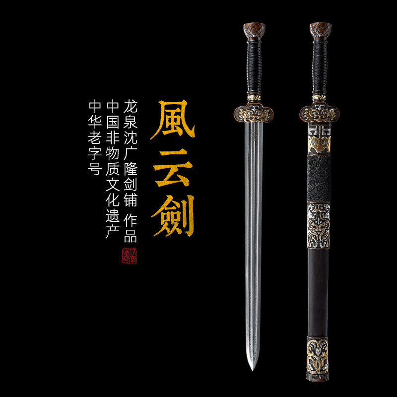 风云剑 花纹钢宝剑龙泉沈广隆传统镇宅剑手工一体硬剑兵器 未开刃