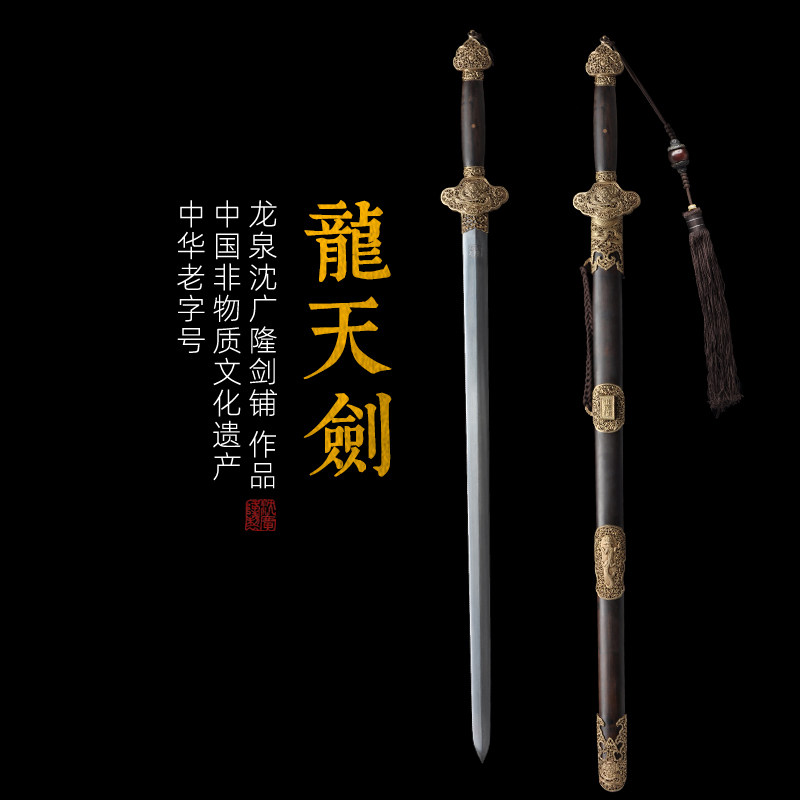 龙天宝剑 龙泉沈广隆沈州作品 全手工花纹钢剑 传统宝剑 未开刃