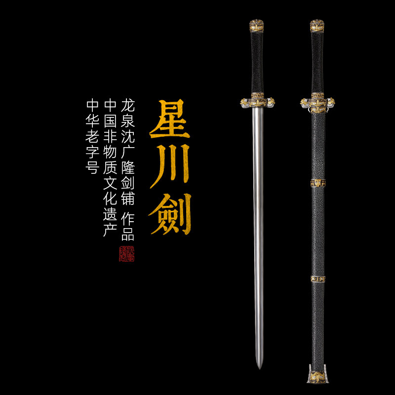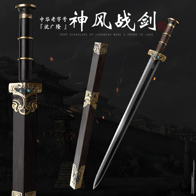 神风战剑 唐剑 汉剑 硬剑一体刀剑 花纹钢龙泉沈广隆 宝剑 未开刃